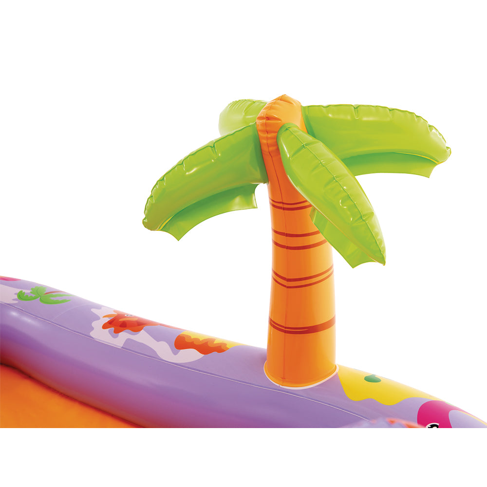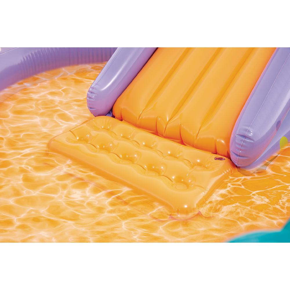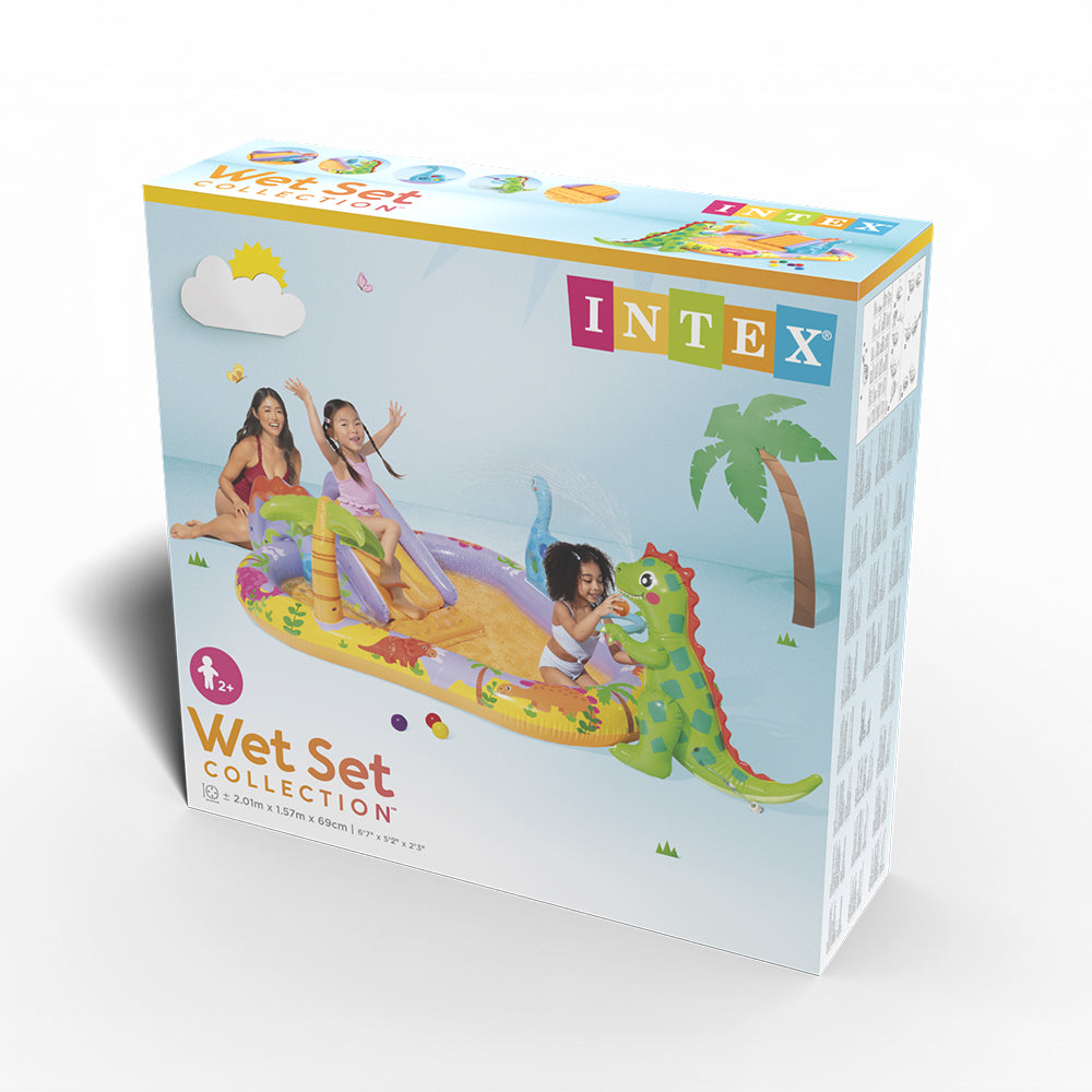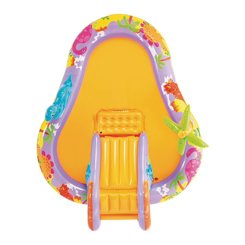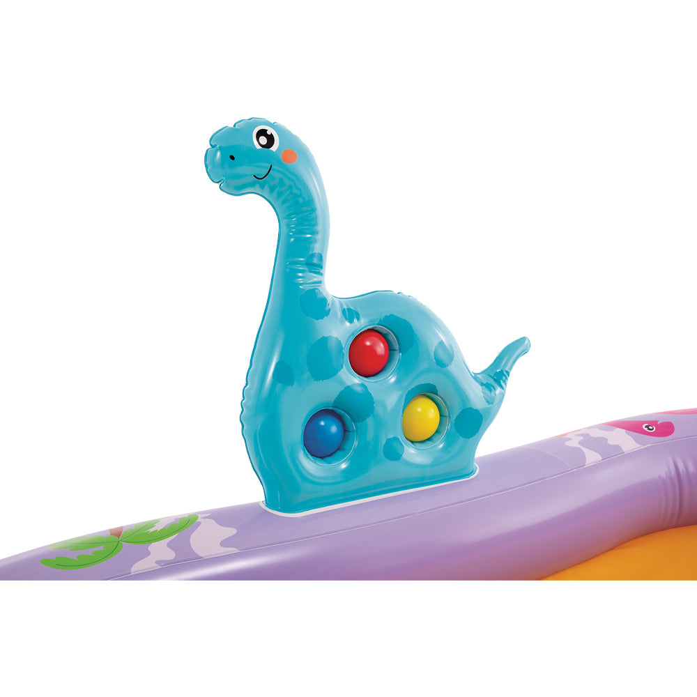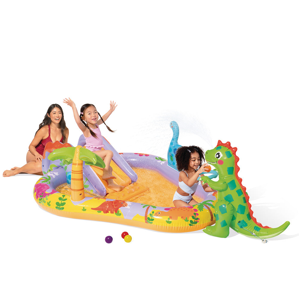 Adornado con simpáticos dinosaurios inflables, este centro hará que tus hijos disfruten horas de entretenimiento en el agua. Su arco removible de dinosaurio incorpora un aspersor que se conecta a la manguera del jardín, convirtiendo cada juego en una experiencia refrescante y única.