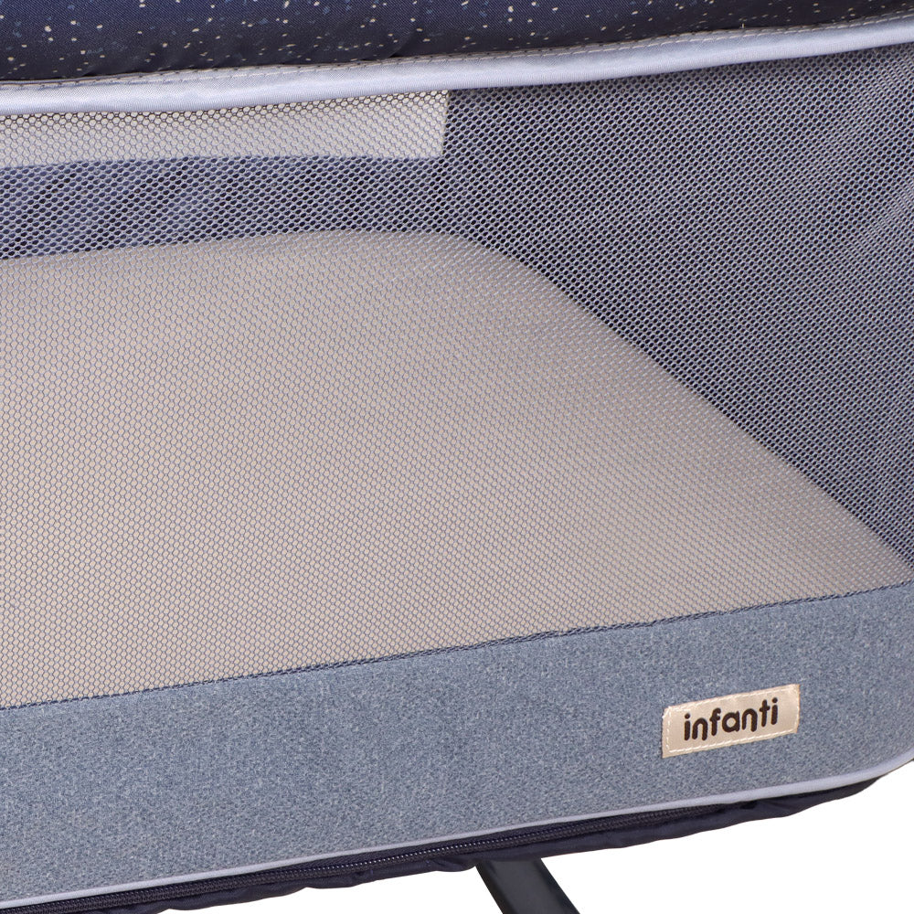 La Cuna Colecho Next2You 2G de Infanti ofrece descanso seguro y cómodo desde el primer día. Con función de balanceo, malla transpirable, sonido y vibración. Además, se convierte en corral de juegos para acompañar el crecimiento del bebé.