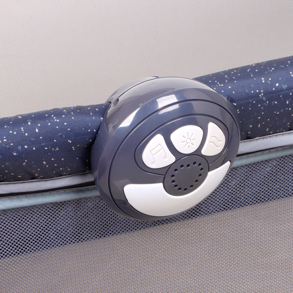 Incluye un módulo desmontable con sonido, luces y vibración relajante, ideal para crear un ambiente tranquilo que favorece el sueño.