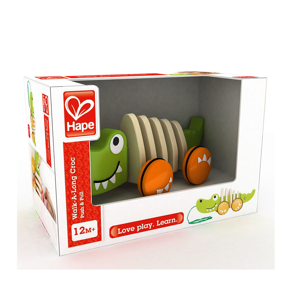 ¡Caminar es mucho más divertido cuando tienes a un amigo como el arrastre en forma de cocodrilo de HAPE! El Cocodrilo camina conmigo de Hape es perfecto para acompañar a tu pequeño en sus primeros pasos, pues sólo debe tirar de él, ¡y comenzar una nueva aventura juntos! Incluso es perfecto para antes que tu pequeño comience a caminar y tirar del él arrastrando, pues puede empujarlo por el sueño para estimular el aprendizaje a la hora de andar. Recomendado para niños desde los 12 meses+. ¡Los primeros pasos nunca fueron tan divertidos!