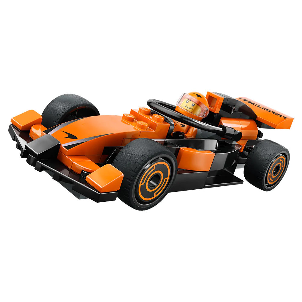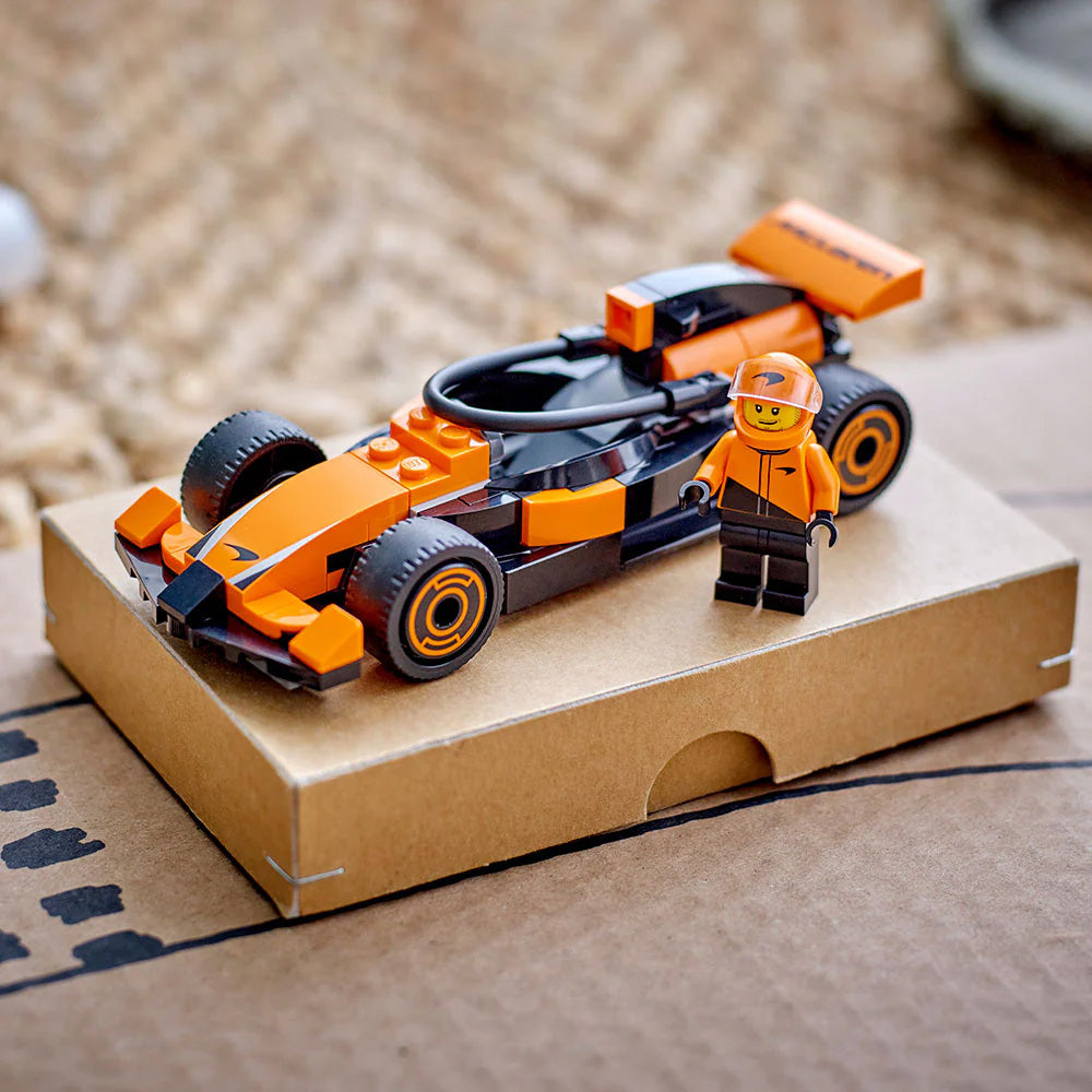 ¡Siente la adrenalina de la pista con el LEGO® City Auto McLaren de F1®! Con diseño aerodinámico y minifigura de piloto, este set invita a los niños a vivir emocionantes carreras y crear historias llenas de velocidad y diversión.