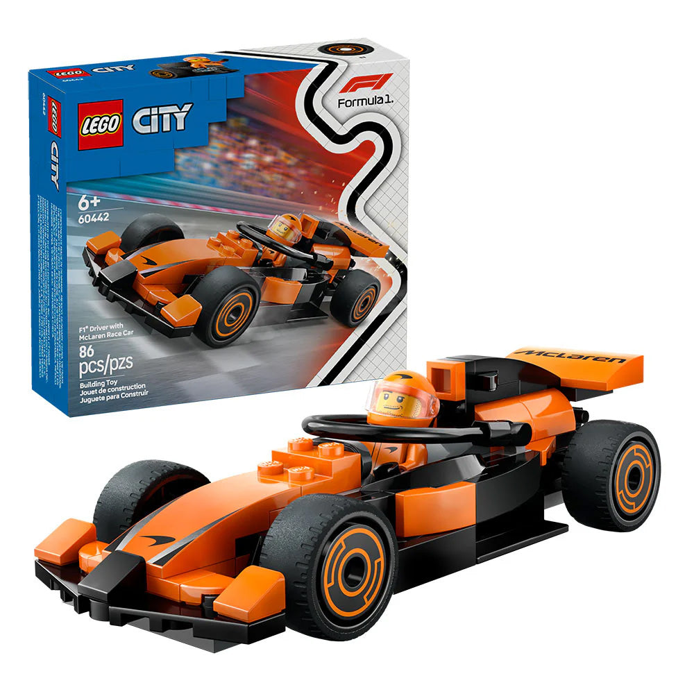 El set LEGO® City – Piloto de F1® con Auto McLaren (60442) pone la emoción del automovilismo directamente en manos de los más pequeños. Con 86 piezas, permite construir un auto de carreras McLaren con un diseño aerodinámico y detalles realistas que harán vibrar a cualquier fan de la velocidad.