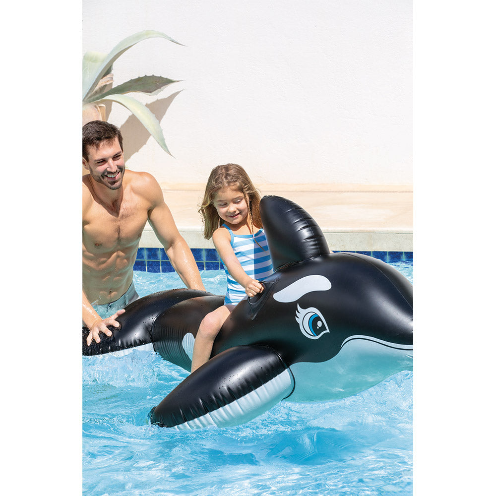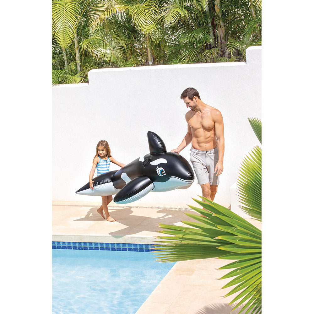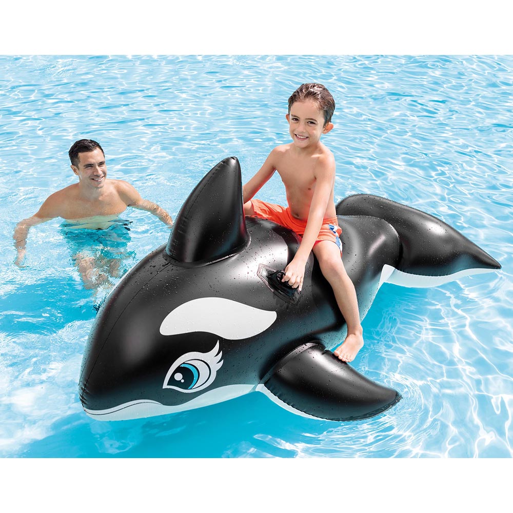 El Flotador Ballena Gigante de Intex es perfecto para compartir juegos en el agua. Con manillas de seguridad, diseño resistente y tamaño ideal para niños y adultos.