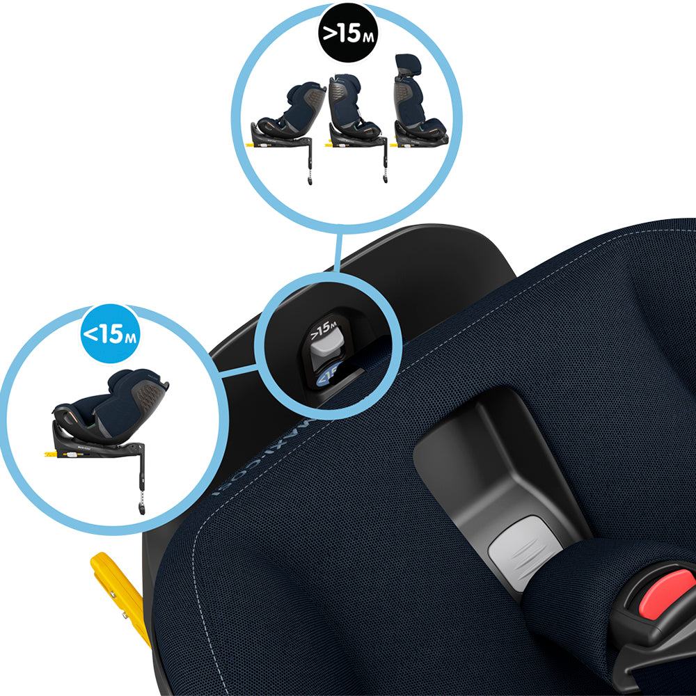El diseño ergonómico incluye un reposacabezas ajustable en 15 posiciones, adaptándose al crecimiento del niño. Además, cuenta con AirProtect® reduciendo el riesgo de lesiones en la cabeza hasta en un 20% en caso de impacto.