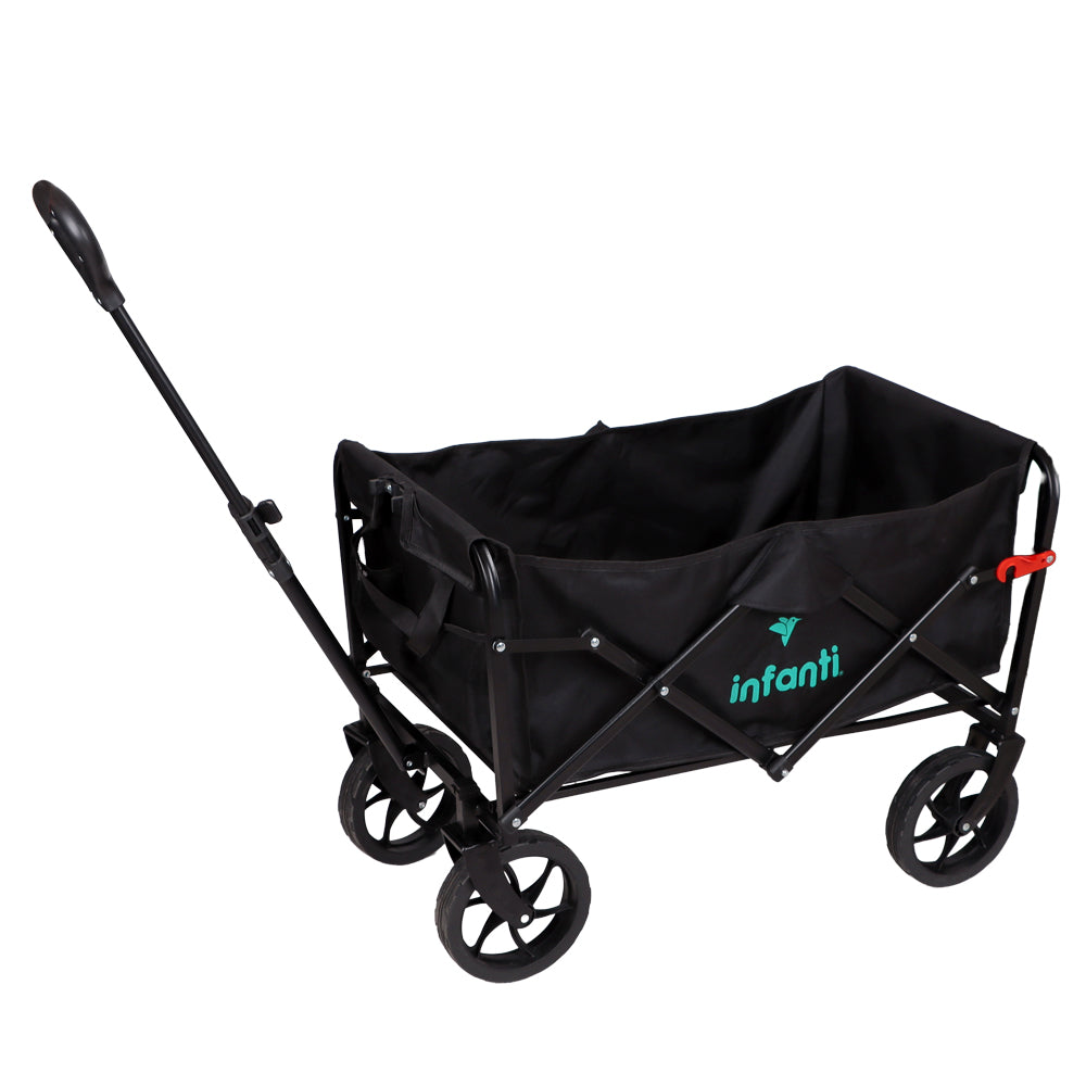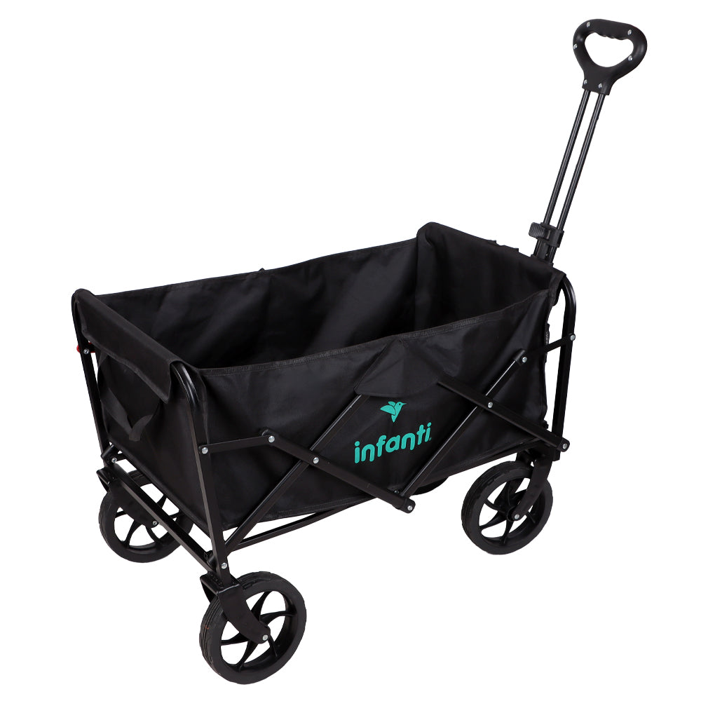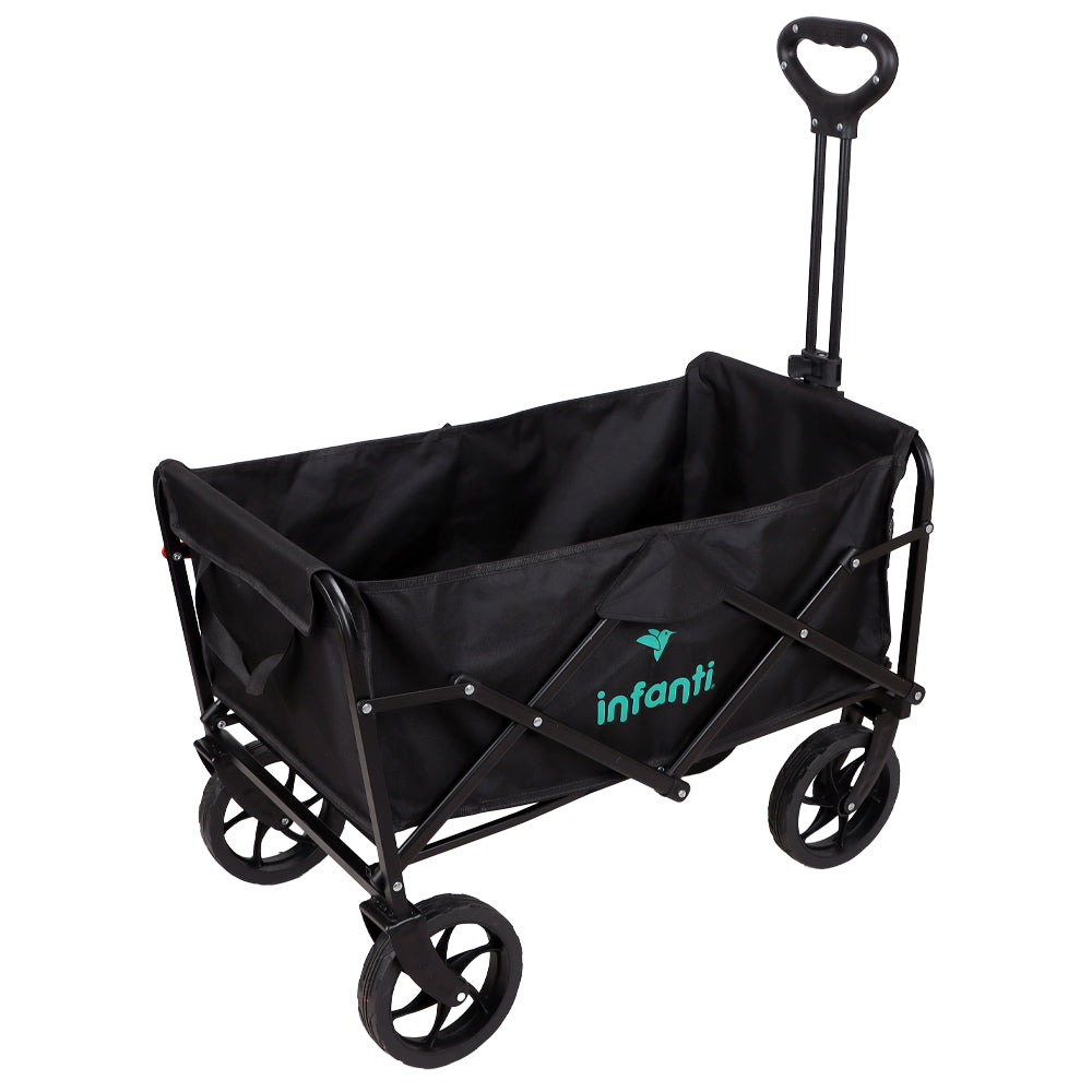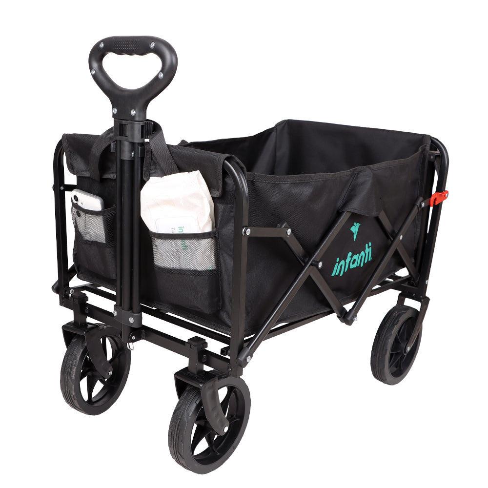 El Carrito Plegable Organizador de Infanti es versátil y resistente, con mango ajustable y dos bolsillos para disfrutan de la vida al aire libre y transportar objetos con facilidad.