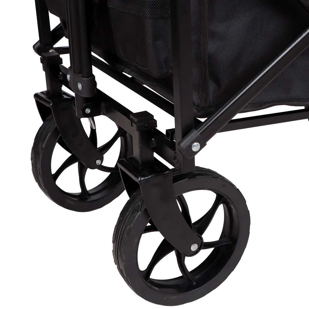 Descubre el Carrito Plegable Organizador: con sus 4 resistentes ruedas, este carrito puede enfrentar diferentes tipos de terreno, desde caminatas en el bosque hasta paseos por la ciudad.