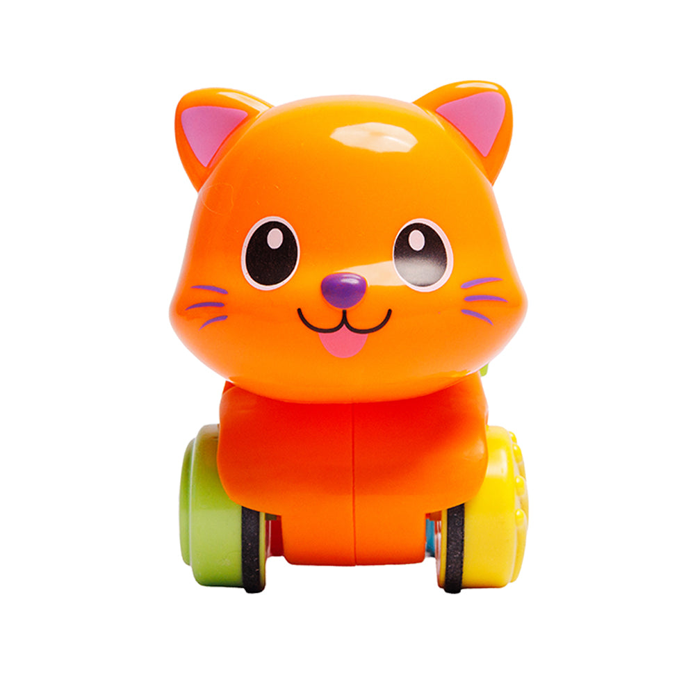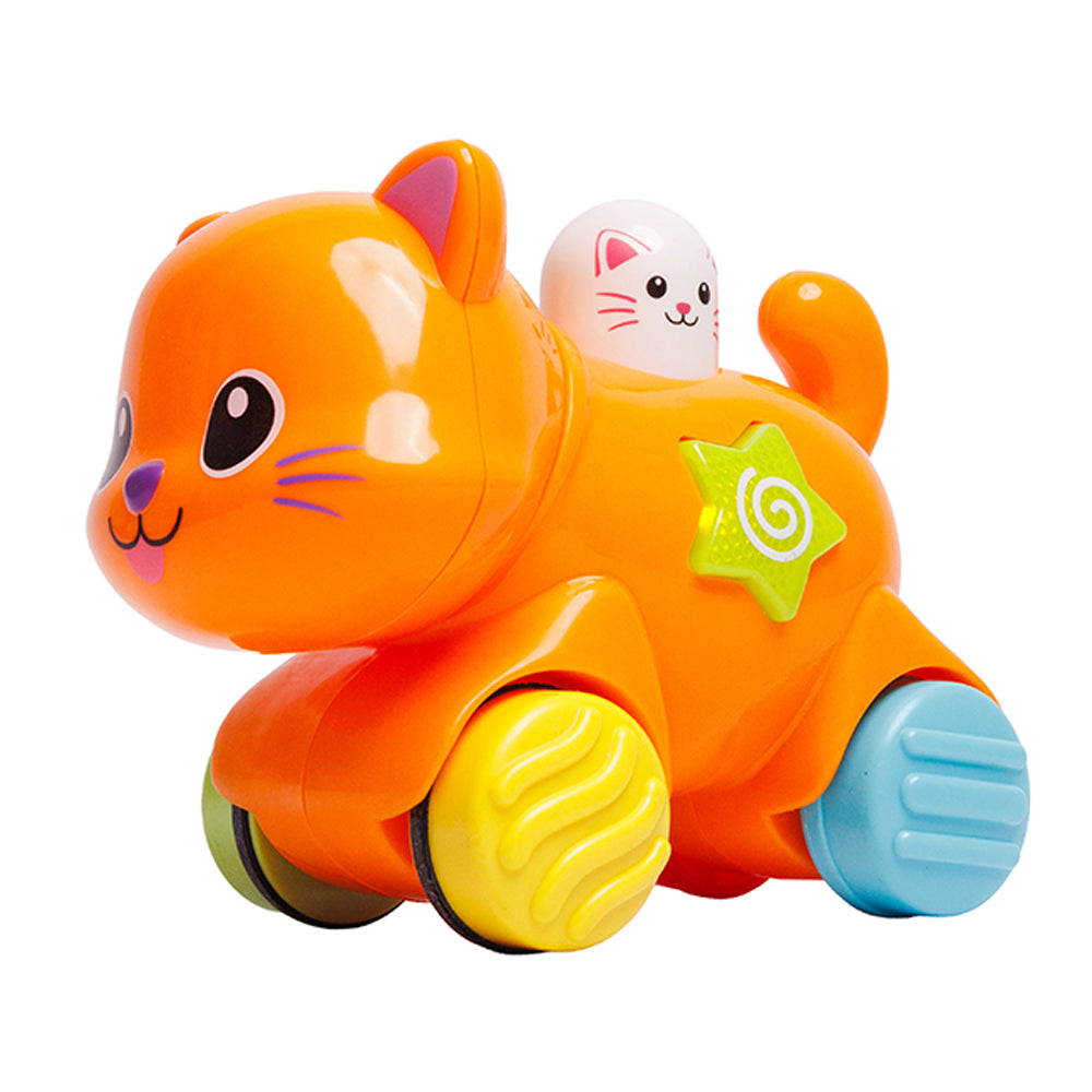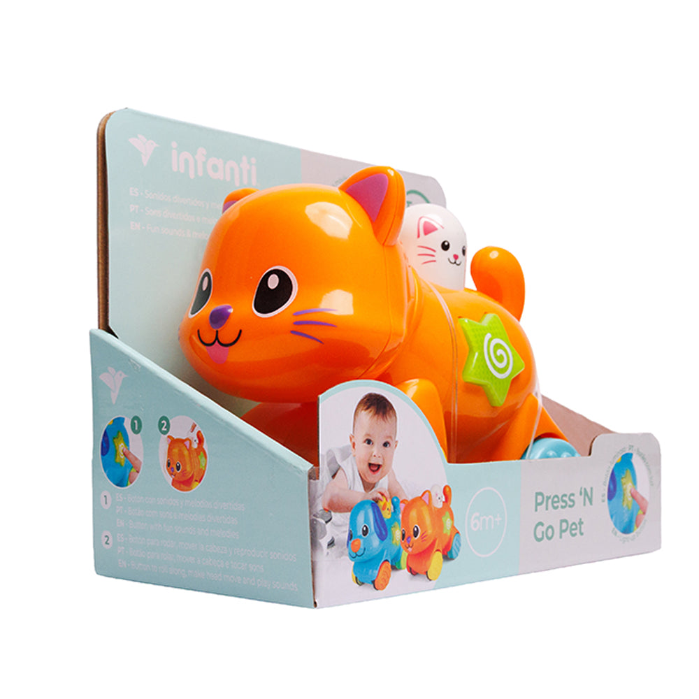 Este adorable Roll Along Pet Friend cobra vida al presionar su botón luminoso: rueda hacia adelante, mueve su cabeza y reproduce melodías y sonidos divertidos. Un juguete ideal para estimular la motricidad, la curiosidad y el juego interactivo en los más pequeños.