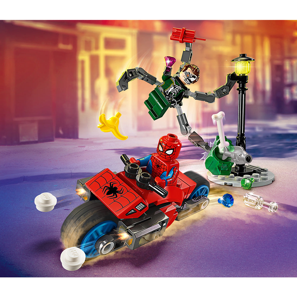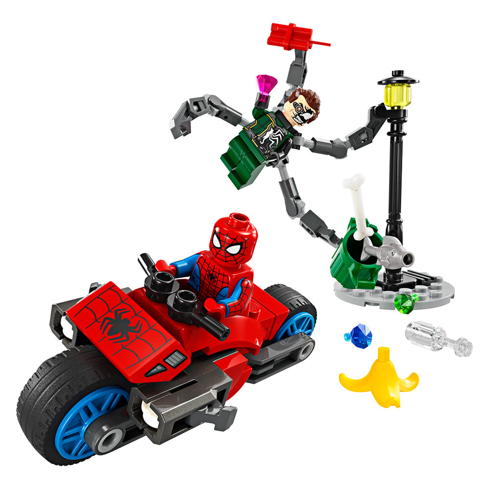 El juguete construible Persecución Spiderman Moto Vs. Doc Ock de LEGO cuenta con infinidad de accesorios geniales para los fans del superhéroe a partir de 6 años.