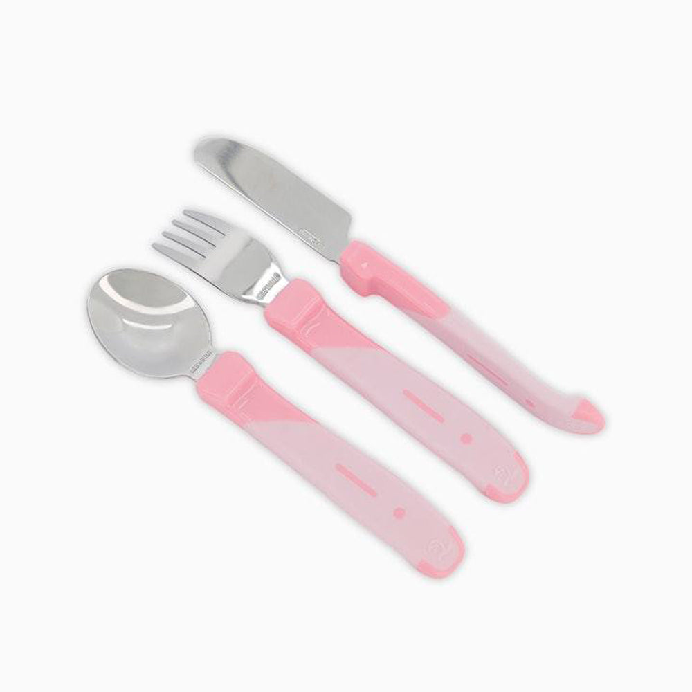 Este set incluye cuchara, tenedor y cuchillo con mangos cortitos, ideales para que las manitos pequeñas los sujeten con confianza. El acabado suave y antideslizante no solo es cómodo, sino que también ayuda a evitar que se resbalen, fomentando la autonomía del bebé durante las comidas.